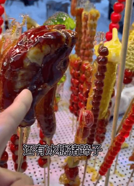 東北攤主把雞爪豬蹄做成糖葫蘆,你們能接受嗎?聽說還有辣條味???