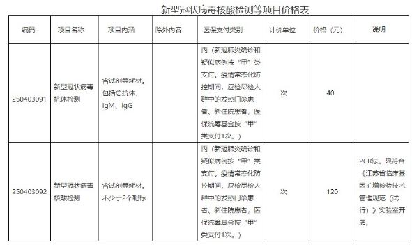 新型冠狀病毒抗體檢測(cè)(包括總抗體、IgM、IgG)價(jià)格為 40 元 / 項(xiàng);