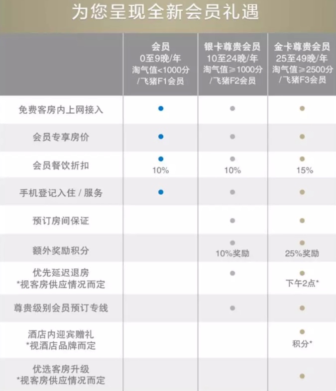 萬豪高級會員禮遇:很多人第一次認(rèn)識飛豬F2/F3會員就是因?yàn)楹腿f豪合作,飛豬金已經(jīng)成為萬豪的經(jīng)典玩法,成為不少人入坑萬豪的首選,飛豬F2會員可以匹配萬豪銀卡,F(xiàn)3會員可以匹配萬豪金卡。