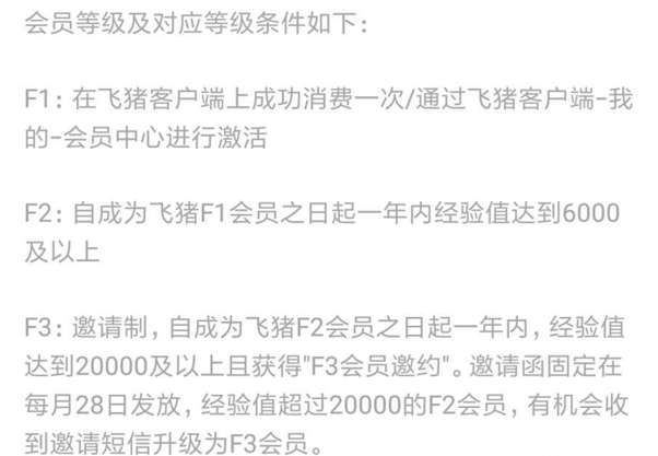 首先來看看飛豬f2/f3會員都有哪些權(quán)益,怎么才能快速升級?