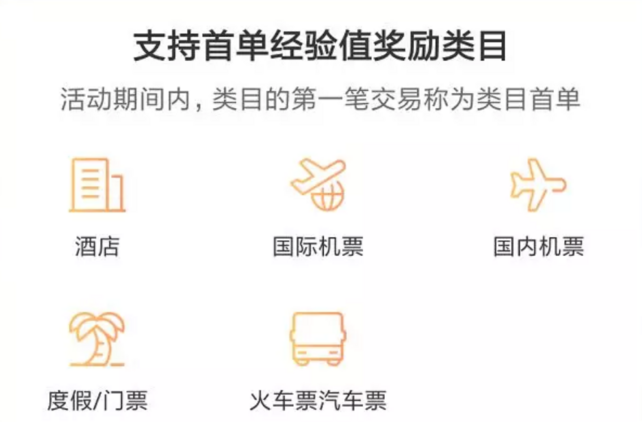 除了買東西以外,在飛豬“發(fā)現(xiàn)”板塊點(diǎn)一個贊可累積1點(diǎn)經(jīng)驗(yàn),寫一個商品點(diǎn)評可累積3點(diǎn)經(jīng)驗(yàn),最快的累積方式還是得利用“類目首單獎勵”快速升級,活動期間只要完成5個類目中,完成任意一個類目首單交易并出行就可獲得1500積分,上限4500積分。